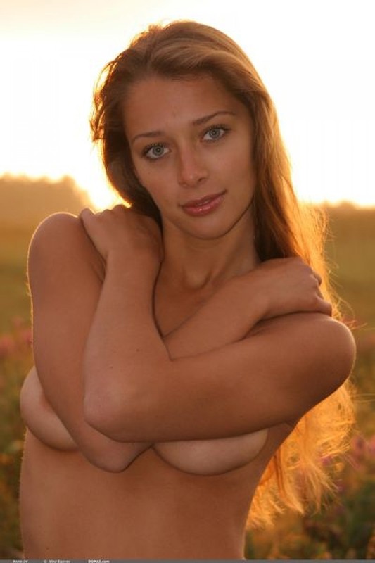 Голенькая нимфоманка позирует на закате в поле и еще порно фото: