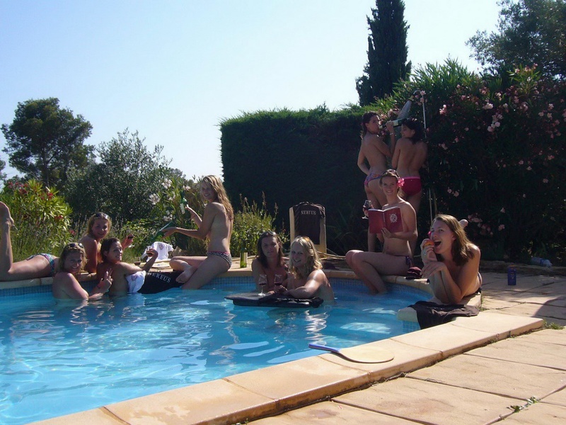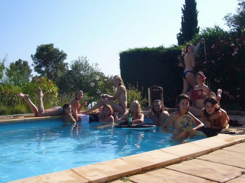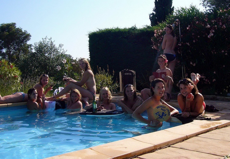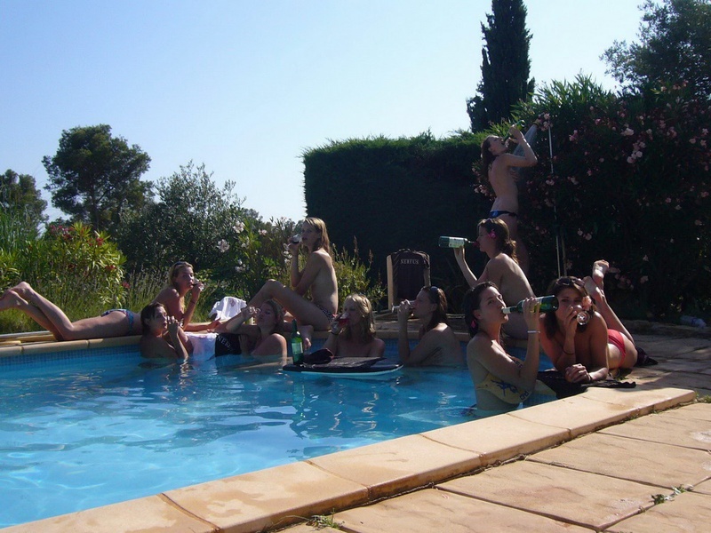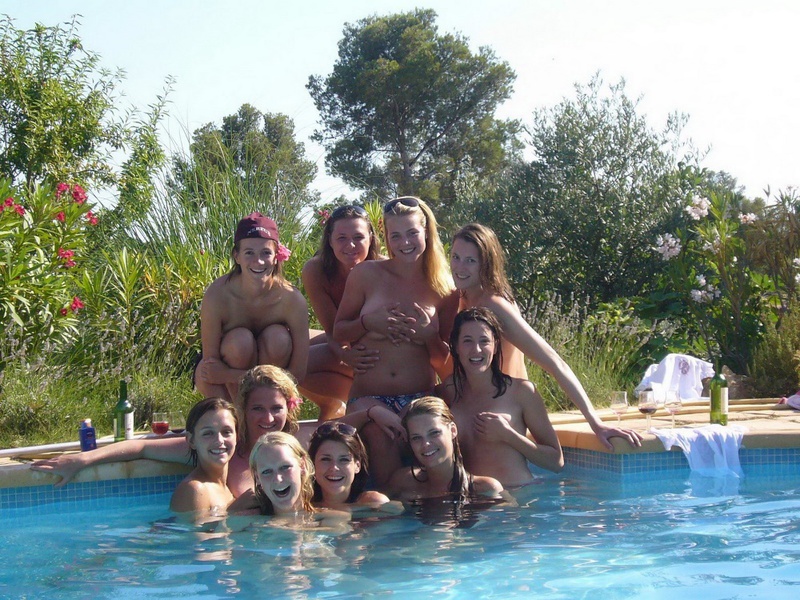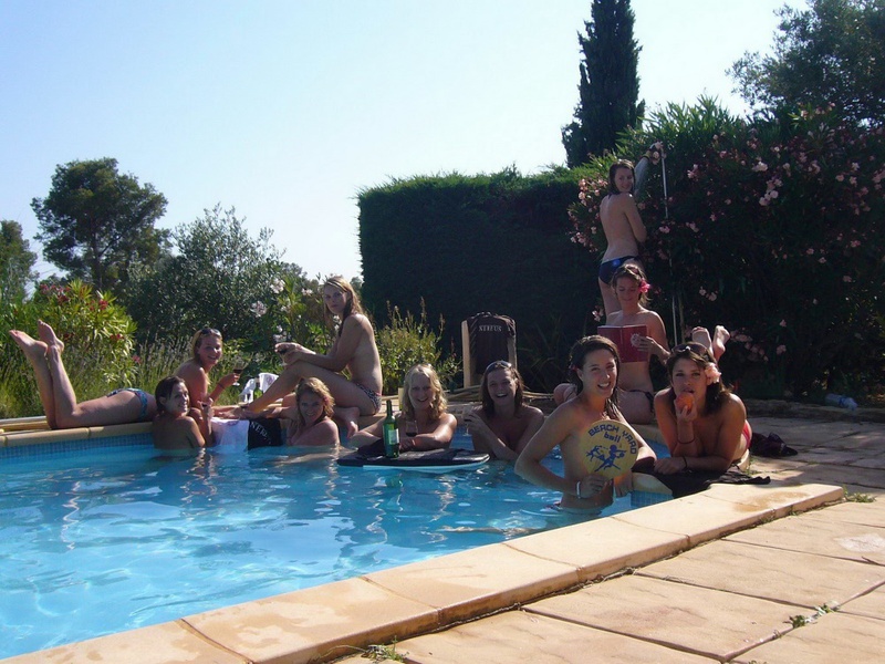 Пьяные студентки из Штатов купаются в бассейне голышом после вина и еще порно фото: