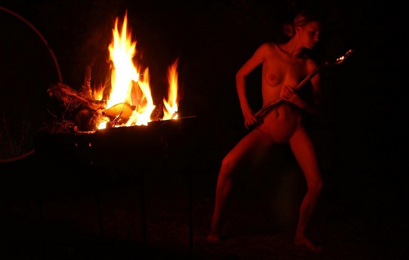 Повелительница огня голышом в темной ночи порно фото