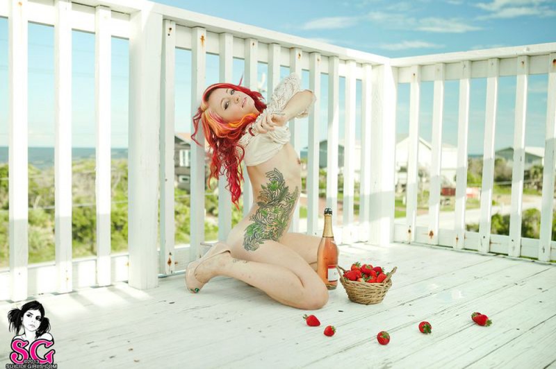 Неформалка с красными волосами разделась на балконе и еще порно фото: