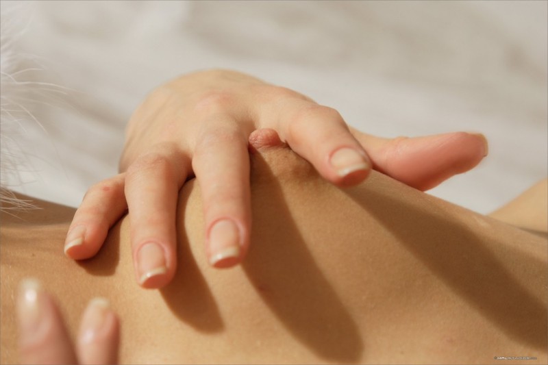Милашка в белых чулках показала письку крупным планом и еще порно фото: